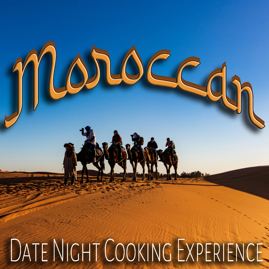 semolina flatbread, eggplant & tomato dip, griddled mushroom skewers, chicken tagine with preserved lemon & olives, caramelized onion & raisin couscous, cucumber orange salad, fried sesame-honey chebakia, mint tea granita