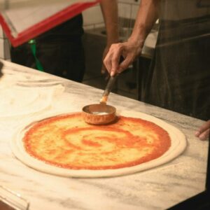 We will be offering a variety of delicious pizza sauces, including a classic tomato sauce, white sauce, pesto sauce, a seasonally-inspired herbed pumpkin sauce and more!