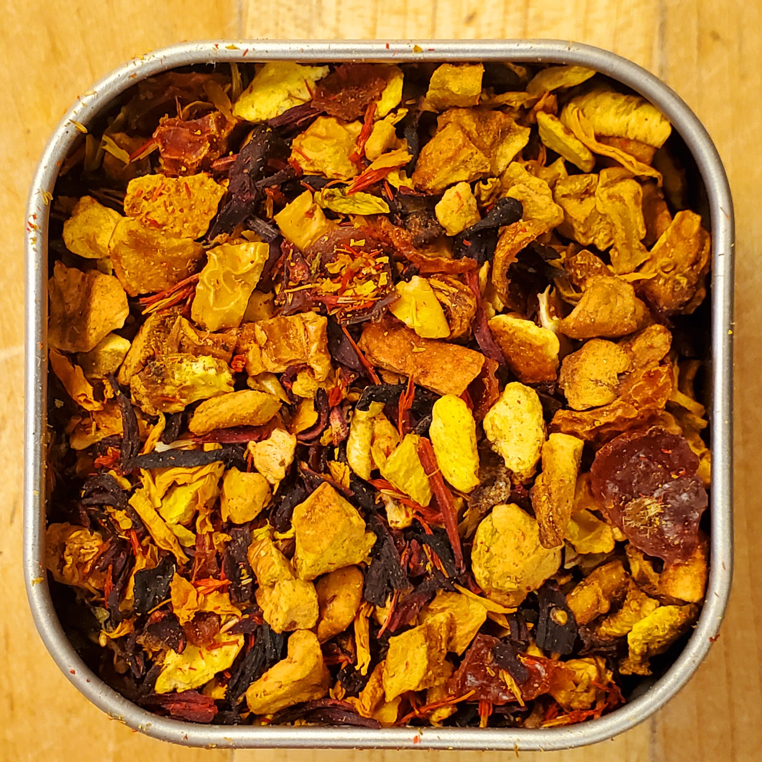 Experience the vibrant allure of Blood Orange herbal tea, boasting a bright and bold flavor reminiscent of freshly squeezed blood oranges. Delight in its lingering soft sweetness, balanced by tangy citrus undertones. Crafted with a blend of apple, hibiscus, orange, rosehip, marigold, safflower petals, and natural flavors, each sip offers a refreshing burst of citrusy goodness that invigorates the senses.