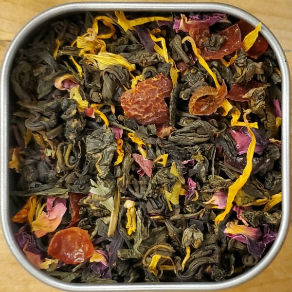 INGREDIENTS: Green tea, Oolong tea, Hibiscus petals, Rosehip, Rose + Calendula + Sunflower petals, Natural flavors (organic compliant).