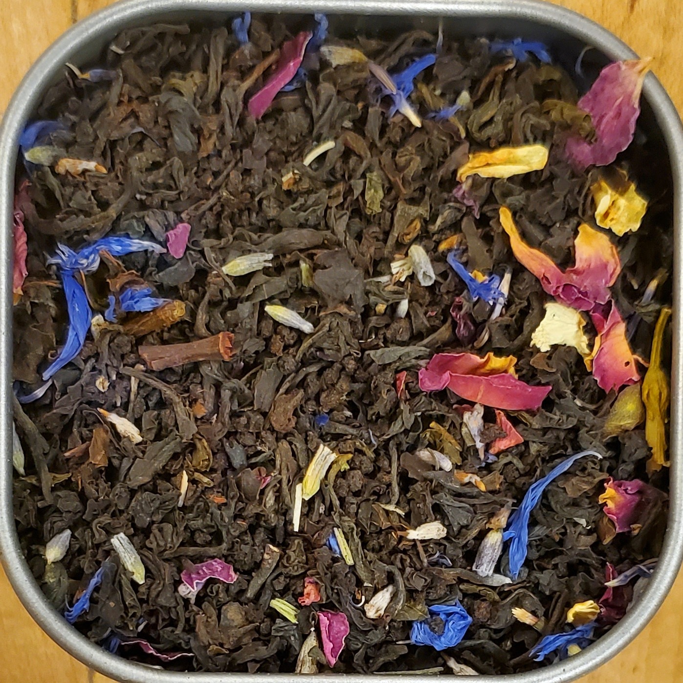 INGREDIENTS: Black + Green tea, Jasmine + Lavender + Rose + Cornflower petals, Natural flavors (organic compliant)