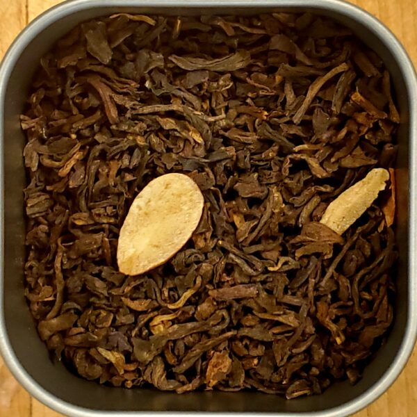 Pu-erh is a style of tea that’s aged for several years in fairly high humidity, developing a certain earthy funk and, allegedly, some fabulous curative properties. It’s basically the blue cheese of tea world, and people tend to be fairly polarized about it. That said, our Scottish Toffee Pu-erh is something we can all agree on. The earthiness of the tea blends seamlessly into the rich, buttery caramel of the toffee flavor, and pieces of almond accentuate the sweet nuttiness. We could waft the aromas off of this cup all day long, it’s truly a cup of joy.