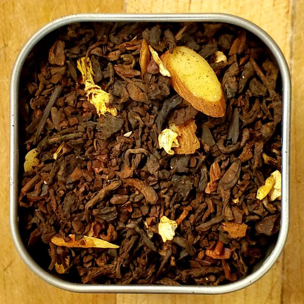 Black tea (Pu-Erh style), Coffee, Almond pieces, Cocoa pieces, Jasmine petals, Natural flavors (Organic Compliant) **Allergen Alert – Contains Almonds**