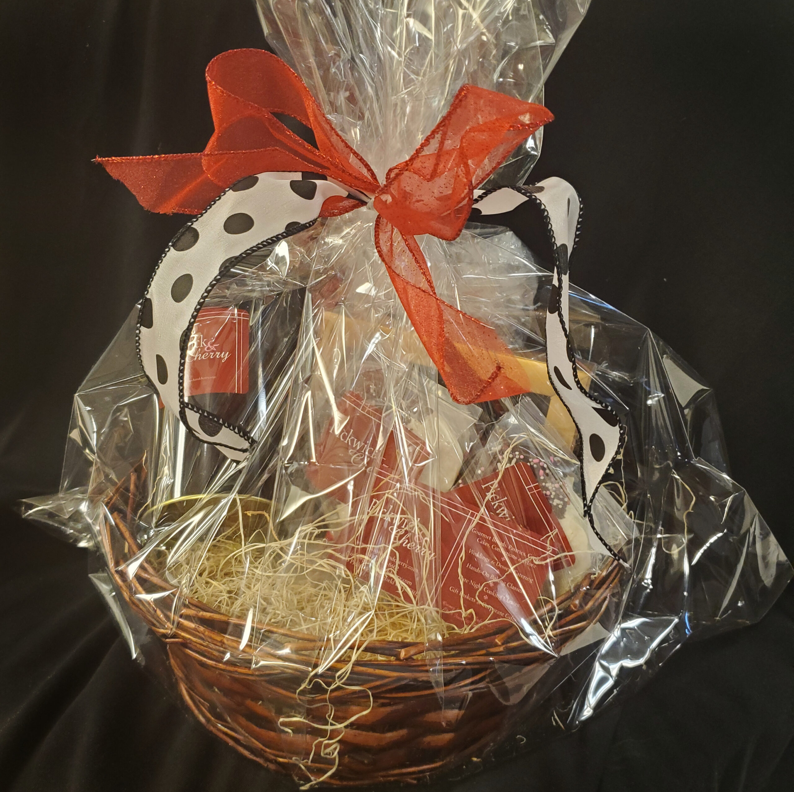 Whether you’re treating a sweetheart, a friend, or even yourself, our Valentine’s Gift Baskets are highly-coveted, beautifully curated collections of our favorite seasonal baked goods. Just choose how much you’d like to spend, and we’ll send a basket laden with our favorite treats of the moment to the people you want to pamper. The combinations are endless, and our supply of top-notch treats are always changing, so the best thing you can do is trust us to fill your basket generously with the things we know your recipients will love. We pride ourselves in using minimal basket-filling packaging, and providing some of best value for any gift basket on the market — let alone one filled with entirely hand-crafted small batch items. Some items you might find in our baskets include luxury-grade tea blends (with tea infuser!), flavored honeys, jams, handmade marshmallows and/or marshmallow pops, dark chocolate tahini puppy chow, boxes of our gourmet chocolates, sets of hand-iced or chocolate chip cookies, granola, cocoa mix, small pies, and more. If your recipient has any special dietary considerations, let us know. Otherwise, just pick a price point and let us take it from there.